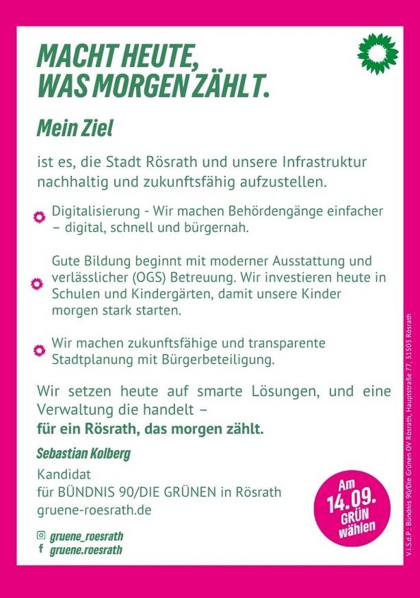 Dass Rösrath eine lebenswerte und weltoffene Stadt im Grünen bleibt.