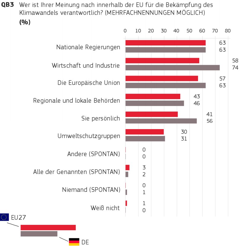 Auffällig ist hier, dass mehr als die Hälfte der Deutschen, anders als der EU-weite Durchschnitt) auch sich selber in die Pflicht nehmen.