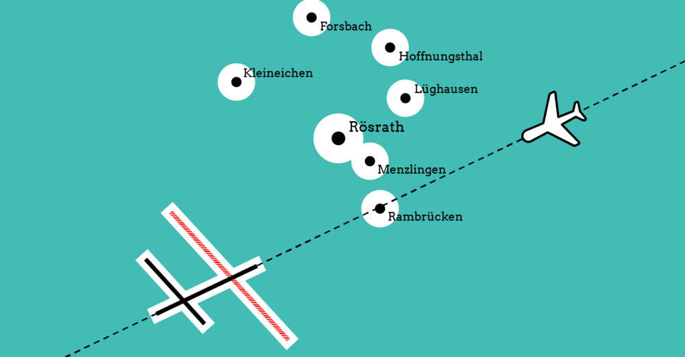 Wie unsere Grafik zeigt, werden damit vermehrt An- und Abflüge über den Ortsteil Rambrücken stattfinden. Einwohnerinnen und Einwohner im Rösrather Süden müssen sich damit leider auf eine erhöhte Lärmbelastung einstellen.