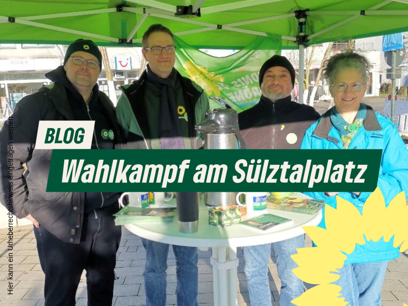Nur noch wenige Wochen bis zur Bundestagswahl 2025 – Wahlkampf mitten im Winter. Bereits in der dritten Woche zieht es uns DIE GRÜNEN auf den Sülztalplatz in Rösrath. Wir wollen vor Ort sein, mit den Menschen ins Gespräch kommen und natürlich auch den öffentlichen Raum nicht allein unseren politischen Mitbewerber*innen überlassen. Dabei war die Woche bundespolitisch mehr als turbulent.